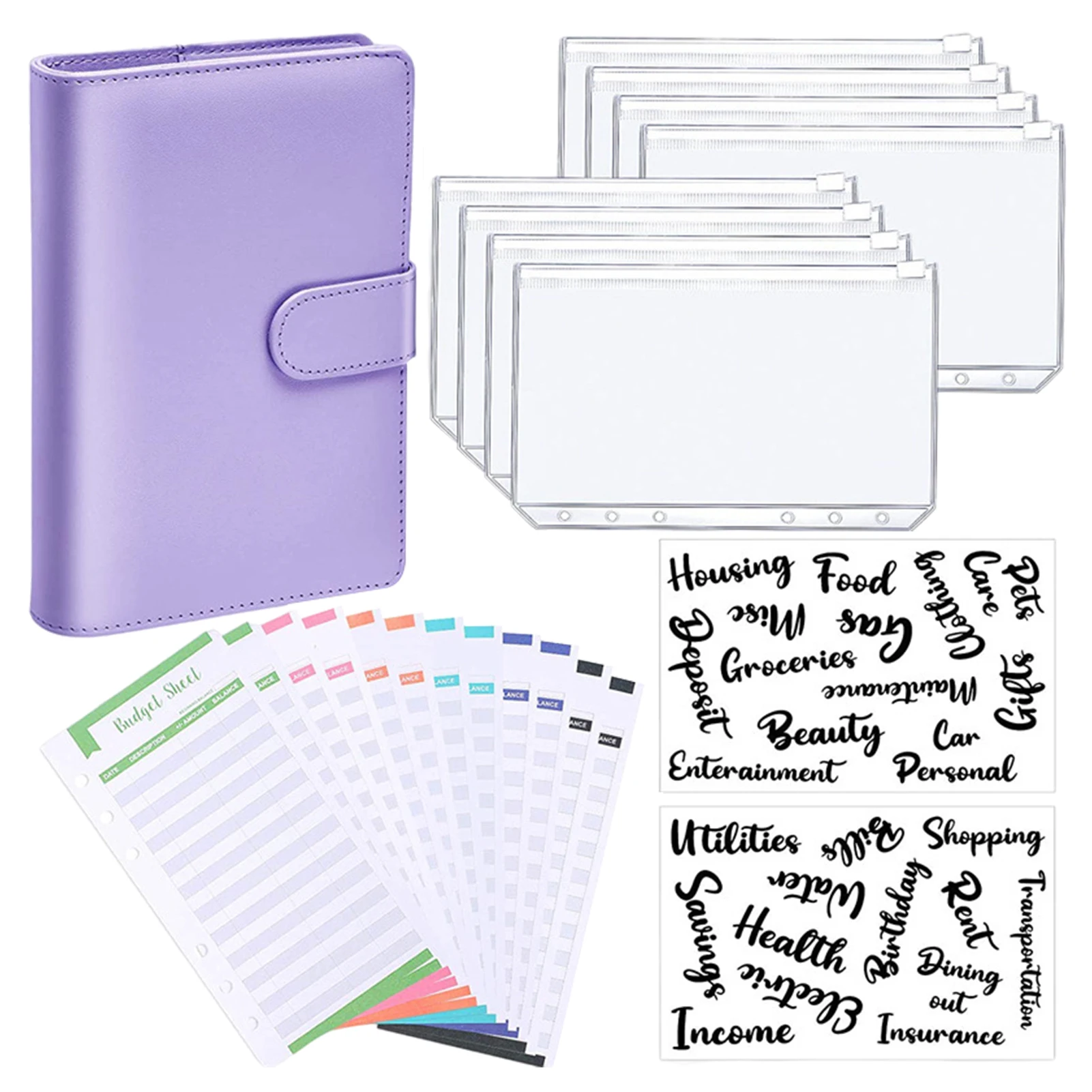 A6 Binder Zipper Bag Notebook Leather Pu Loose Leaf Book Budget Handbook With Zipper Pocket Expense Budget Sheets Letter Sticker File Folder Aliexpress